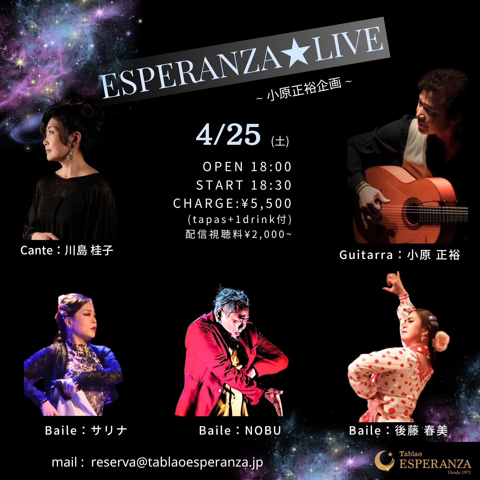 2026年4月25日(土) ESPERANZA LIVE【エスペランサ⭐️presents⭐️小原正裕企画】