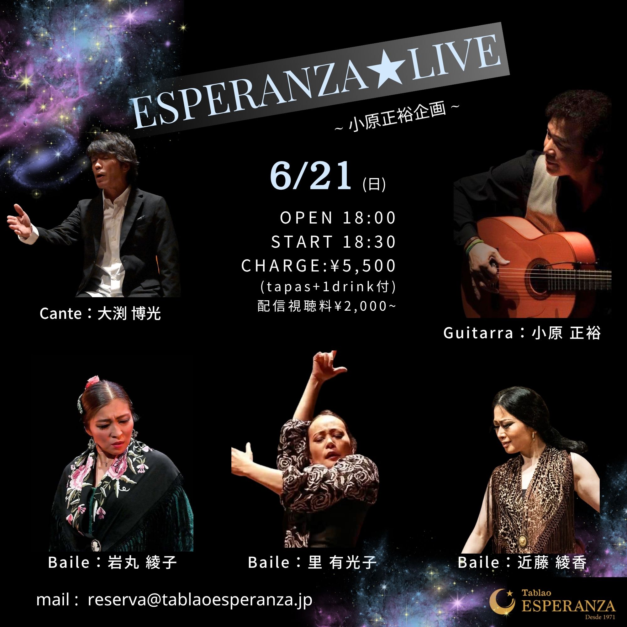 (※迷惑メール設定している方は、info@tablaoesperanza.jp を受信できるようにしておいてください。)