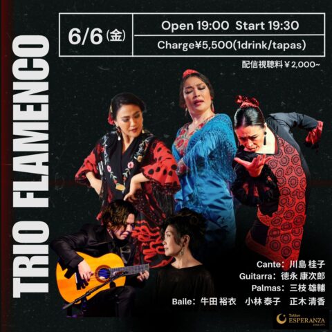 LIVE情報 日時2026年2月21日(土) 18:30スタート 出演Guitarra:小原 正裕Cante:川島 桂子Baile:川田 久美子 篠田 三枝 津幡 友紀 ※ 止むを得ない理由があり出演者に変更がある場合がございます。ご了承ください。 ご視聴について DONATE ¥2,000 1:上記「DONATE」ボタンからクレジットカードにてお支払いください。2:ご購入後、視聴方法が記載されたメールが届きますのでご確認ください。(※迷惑メール設定している方は、info@tablaoesperanza.jp を受信できるようにしておいてください。)3:配信期間は 2/28(土) 23:59 まで、1週間のご視聴となります。 ※Stripe というシステムを利用し、安全に VISA、MASTER、AMEX、JCB のご利用が可能です。※クレジットカードでのお支払いが出来ない場合は下記のメールアドレスまでご連絡ください。 — お問い合わせ —» 続きを読む