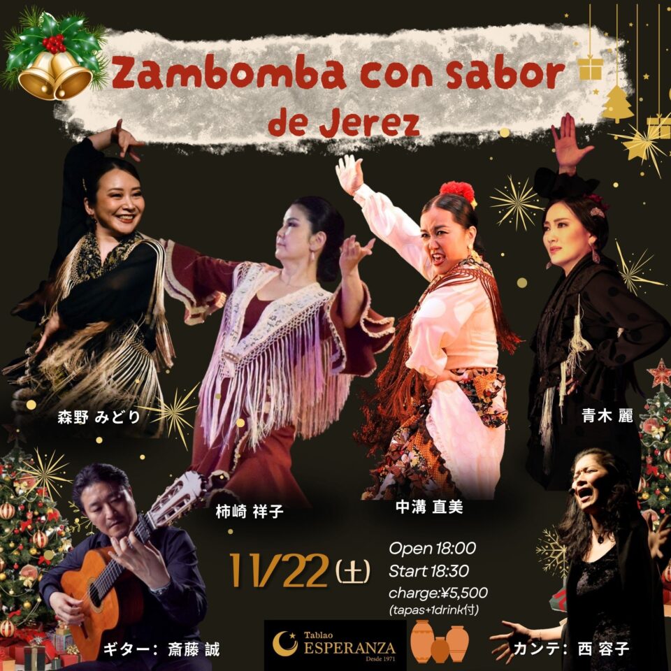 ”Zambomba con sabor de Jerez”と題して、個性豊かなメンバーでのライブを企画いただきました。お楽しみに!!